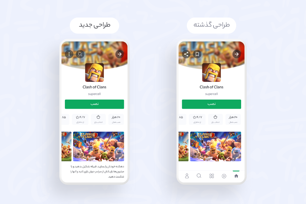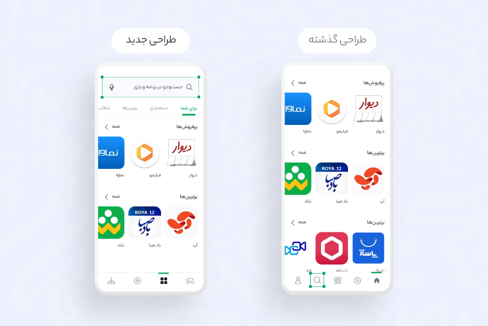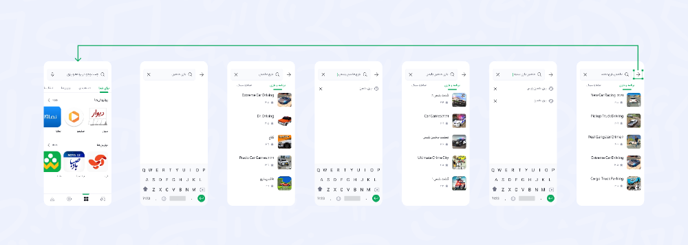 در گذشته طراحی مسیر جستوجوی بازار با توجه به نیازها و رفتار کاربران در محتوای بازیها و برنامهها انجام شده بود. یعنی نسخه قبلی را برای برطرف کردن نیاز پیدا کردن بازی یا برنامه طراحی کرده بودیم. بعد از اضافه شدن محتوای ویدیویی باید بررسی میکردیم فلوی جستوجو نیاز به تغییر دارد یا خیر.