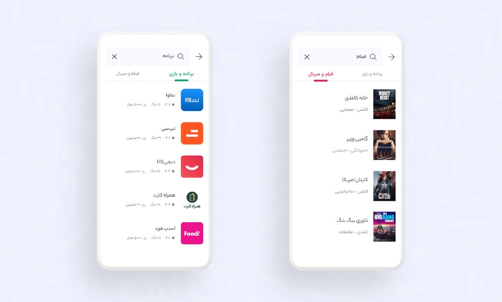 به این شکل فرایند جستوجو، طی چند iteration متناسب با محتواهای داخل اپلیکیشن بازطراحی شد.